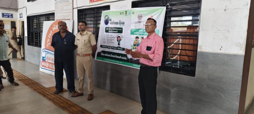 જે અન્વયે દેવભૂમિ દ્વારકા જિલ્લાના ખંભાળિયા તથા દ્વારકા એસટી ડેપો ખાતે પર્યાવરણ દિવસ અન્વયેની સફાઈ અભિયાન હાથ ધરી કર્મચારી તેમજ મુસાફરોને પ્લાસ્ટિકનો વપરાશ ન કરવા તેમજ ડિવિઝન હેઠળના કંટ્રોલ પોઈન્ટ ખાતે કાયમી સ્વચ્છતા જાળવવા અને પ્લાસ્ટિકનો ઉપયોગ ઓછો કરવા એસ.ટી કર્મચારીઓ દ્વારા શપથ લેવામાં આવ્યા હતા.