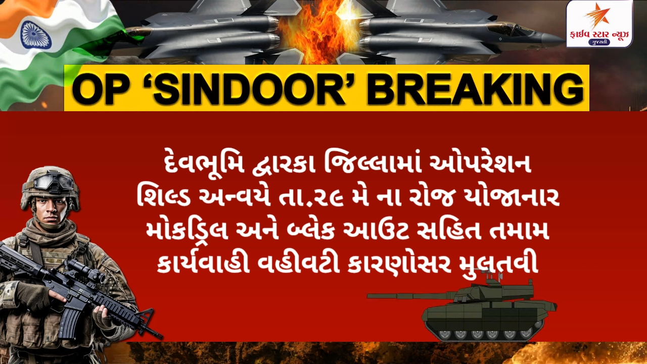 ઓપરેશન શીલ્ડ અન્વયે તા.૨૯ મે, ૨૦૨૫ના રોજ યોજાનાર મોકડ્રિલ અને બ્લેક આઉટ (અંધારપટ) સહિત તમામ કાર્યવાહી વહીવટી કારણોસર મુલતવી રાખવામાં આવી છે.