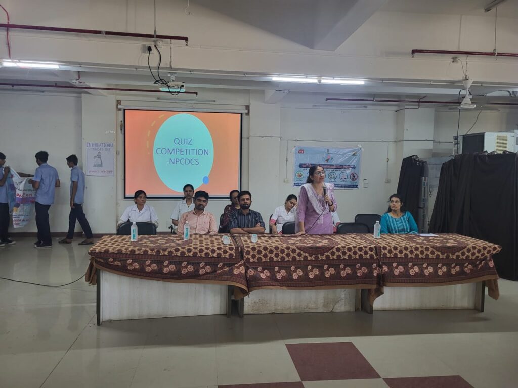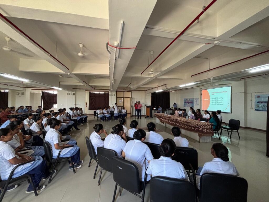 ૦ જૂન ૨૦૨૫ ના રોજ મુખ્ય જિલ્લા આરોગ્ય અધિકારીશ્રીના માર્ગદર્શન હેઠળ પોરબંદર નર્શિંગ સ્કૂલ ખાતે વિશ્વ હાયપર ટેન્શન દિવસ અંતર્ગત ક્વિઝ કોમ્પિટિશનનું આયોજન કરવામાં આવ્યુ હતુ. ક્વિઝ સ્પર્ધાના આરંભમાં નર્સિંગના વિદ્યાર્થીઓને હાયપરટેન્શન રોગ વિશે માહિતી આપવામાં આવી હતી, જેમાં રોગના લક્ષણો, કારણો, નિવારણ અને નિયંત્રણ અંગે ચર્ચા કરવામાં આવી હતી. જેમાં વિદ્યાર્થીઓએ ઉત્સાહભેર ભાગ લીધો અને તેમની જ્ઞાનસંપત્તિ વર્ધિત કરી હતી. ત્યાર બાદ ક્વિઝ કોમ્પિટિશનનું આયોજન કરવામાં આવ્યુ હતુ અને તેમાં પ્રથમ ક્રમાંક પર આવનાર ટીમને મોમેન્ટો આપી પ્રોત્સાહિત કરવામાં આવી હતી.