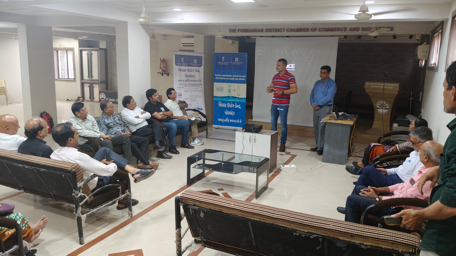પોરબંદર જિલ્લા ઉદ્યોગ કેન્દ્ર દ્વારા વિશ્વ પર્યાવરણ દિવસ – ૨૦૨૫ની ઉજવણીનાં ભાગરૂપે સિંગલ યુઝ પ્લાસ્ટિકના વિકલ્પો એમએસએમઈ – એકમોની ભાગીદારી વિષય પર ધ ડીસ્ટ્રીક ચેમ્બર ઓફ કોમર્સ એન્ડ ઇન્ડસ્ટ્રીઝ, પોરબંદર ખાતે વર્કશોપ યોજવામાં આવ્યો હતો.